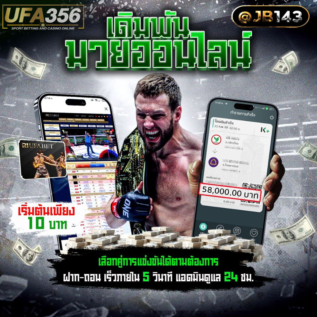 เว็บแทงมวยONE @JB143 เว็บแทงมวยที่ดีที่สุด แทงมวยออนไลน์บนมือถือ เว็บแทงมวยONEยอดนิยมUFABETเว็บพนันออนไลน์อันดับ1 เดิมพันมวย ครบทุกรูปแบบเช่นมวย ONE championship มวยพักยก มวยไทยทุกสนาม มีให้ชมสดทุกคู่ UFABETเราได้รวบรวม การแทงมวย ครบวงจรทุกรูปแบบของเวทีมวยทั้งหมดมาไว้ให้คุณได้ศึกษาแล้วในบทความนี้ เว็บที่เปิดราคามวยมาให้อย่างเป็นธรรม UFABETถูกต้องตามกลไกการออกราคาที่ทั่วโลกใช้กัน มีระบบ AI ที่คำนวณราคาต่อรองที่แม่นยำที่สุด บอกลาการแทงมวยผ่านกลุ่มไลน์ที่ไม่สามารถเชื่อถือได้ UFABET เว็บใหญ่เว็บตรงใที่ดีที่สุดในตอนนี้ไม่ผ่านเอเย่นต์ใดๆ